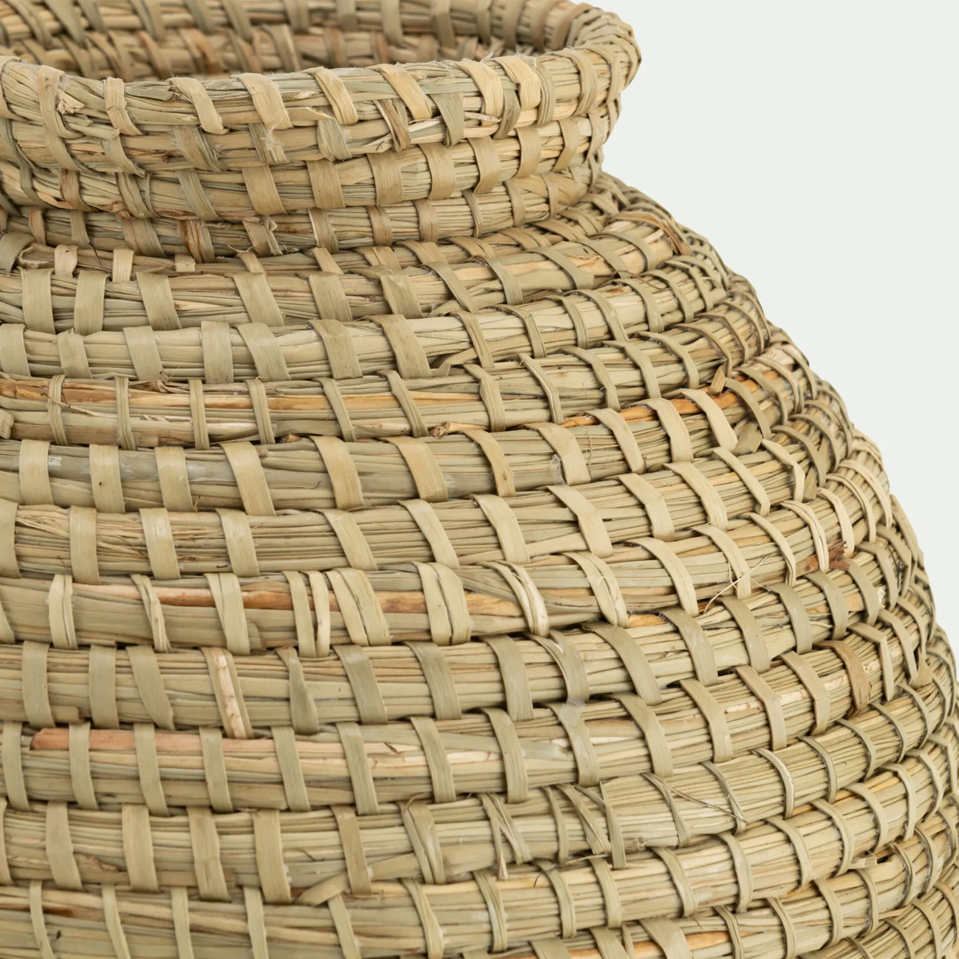 Ce grand vase apporte une touche déco à votre intérieur. Parfait pour accueillir de grandes fleurs séchées comme des pampas, ce vase se pose dans un coin de votre pièce pour donner de l’allure à votre déco. En jonc de mer, il est tressé délicatement pour un effet champêtre. Plongez-vous dans une ambiance naturelle avec ce vase haut de 41 cm. Il s’adaptera à tous les types d’intérieur pour une pièce harmonieuse.
