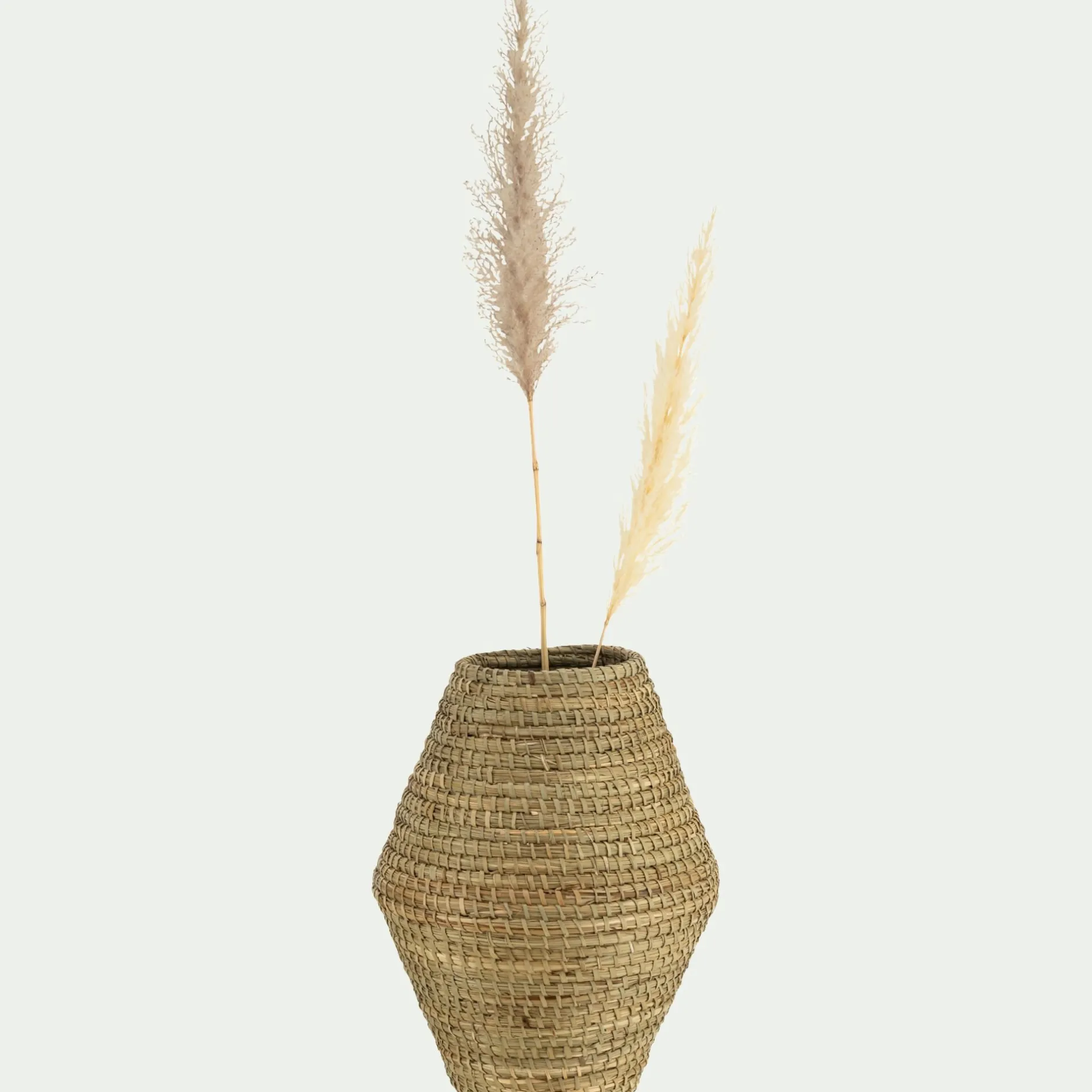 Choisissez le grand vase Fileb pour décorer votre intérieur. En jonc de mer tressé, ce vase apporte du charme à votre maison. Sa jolie couleur naturelle se marie avec tous types de décorations, qu’elles soient contemporaines ou même bohème. Haut de 40 cm, il décore un coin de votre salle à manger ou de votre chambre. Seul ou pour mettre e avant vos compositions florales séchées, il complétera avec élégance votre déco.