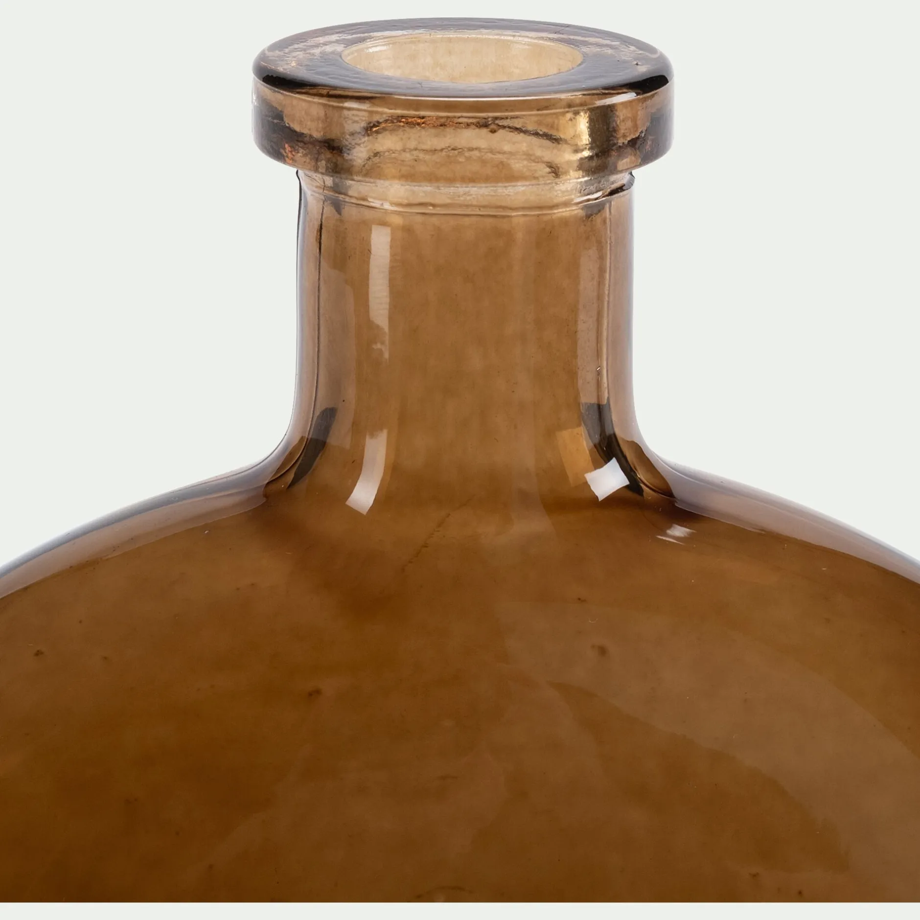 Ajoutez une touche d’originalité à votre intérieur avec ce petit vase en verre teinté. Sa forme arrondie et son goulot étroit en font un objet à la fois décoratif et pratique, idéal pour accueillir une branche unique ou une fleur. La couleur ambrée du verre mettra en valeur les matières naturelles ou séchées. Posé sur une console, un meuble bas ou une étagère, il s’intègrera dans tous les styles d’intérieur.