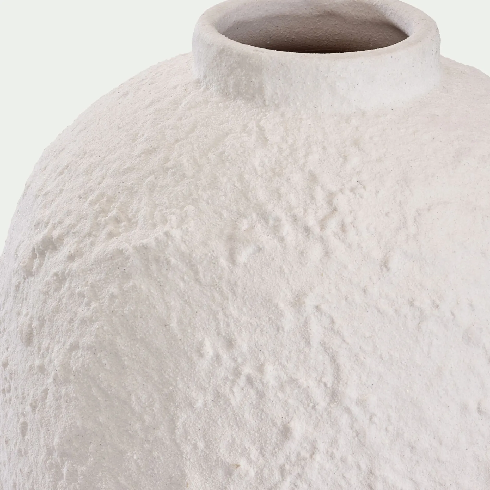Palmadula est un vase contemporain en céramique. De la famille des poteries, ce vase est essentiellement composé d’argile. Son design épuré s’inspire par ailleurs de l’univers minéral dont il est le fruit. Ce vase blanc présente une surface texturée, à la fois hétérogène et grainée. De charmantes aspérités viennent ponctuer la céramique et offrir un effet brut très tendance. Ce vase déco s’intègre aussi bien à un style contemporain, naturel, désertique, bord de mer… Une pièce élégante, avec beaucoup d’allure, à accompagner de quelques fleurs et feuilles séchées.