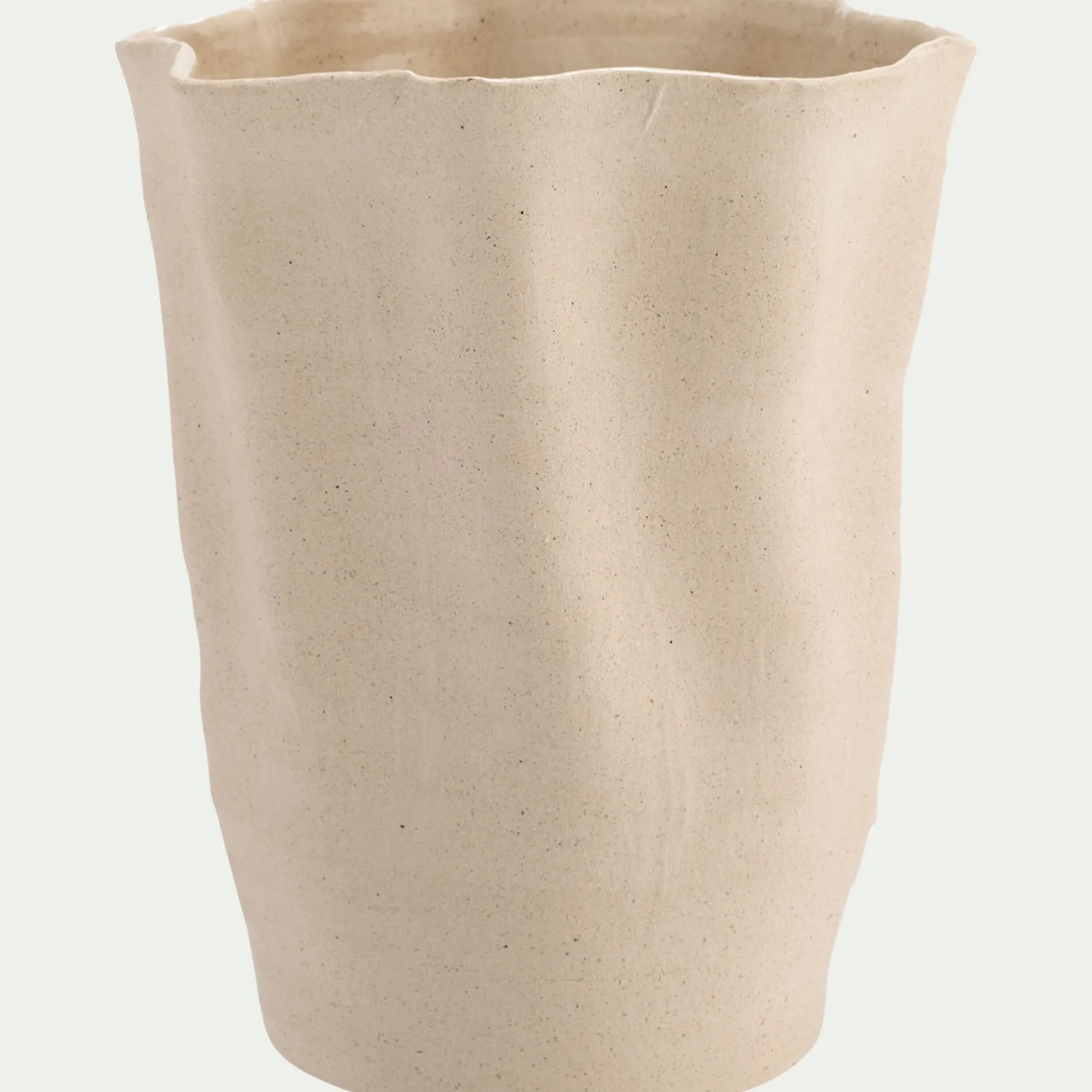 Laissez-vous séduire par le design raffiné de ce vase en grès beige, une pièce au caractère intemporel qui sublime chaque intérieur avec une touche de modernité. Avec sa hauteur de 24,5 cm, il se distingue par sa silhouette harmonieuse et son allure sculpturale, idéale pour accueillir des compositions florales ou se suffire à lui-même en objet d’art. Son fini mat et sa teinte beige subtile s’intègrent parfaitement dans une décoration contemporaine ou minimaliste, apportant chaleur et sophistication à votre espace. Travaillé avec soin dans un grès de qualité, il conjugue robustesse et finesse des lignes pour un rendu aussi élégant que durable. Un incontournable pour une décoration haut de gamme, où simplicité rime avec raffinement.