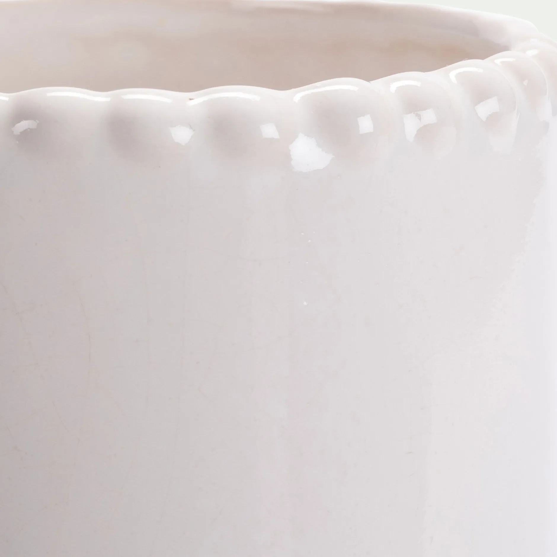 Le vase Foligno de 15 cm de haut séduit par sa silhouette tubulaire minimaliste, soulignée d’un détail graphique plein de fantaisie. Confectionné en céramique blanche, il arbore un col délicatement orné de petites boules en relief, comme un liseré perlé. Une touche ludique et raffinée qui contraste avec la pureté de ses lignes.