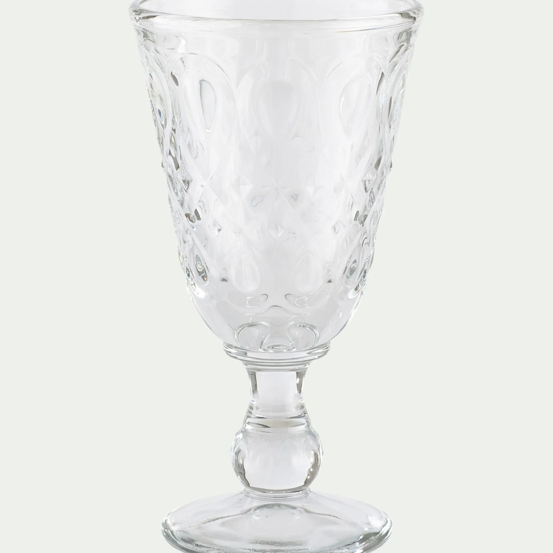Ajoutez une touche d’élégance à votre table en optant pour ces verres à vin raffinés. Leur design brut et authentique, agrémenté d’un motif en relief, confère une esthétique unique à ces verres transparents. Ce lot de 6 verres de table ajoute subtilement une note chic à la déco de votre table. Avec une contenance de 23 cl, ces verres à pied en verre vous accompagnent tout au long du repas, ajoutant une dimension sophistiquée au dressage de votre table.